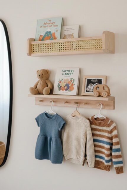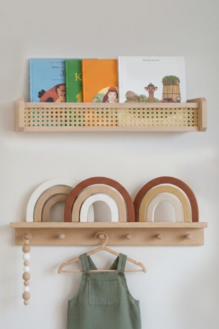Ahşap Montessori Hazeran 2’li Çocuk Odası Duvar Rafı, Kitaplık